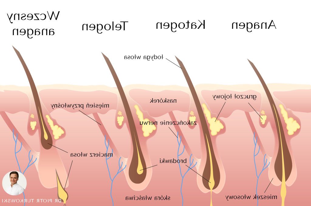 - hormonalne wypadanie włosów – np. po porodzie. Na początku ciąży organizm kobiety produkuje dużo estrogenu, który hamuje wypadanie włosów. Po porodzie poziom estrogenu spada, a włosy narażone są na wypadanie.
