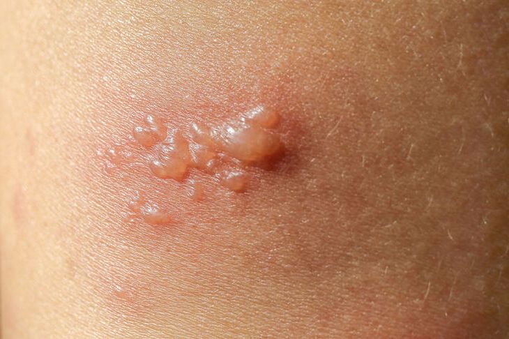 - Swędzące bąble na skórze wywołane wirusem HSV